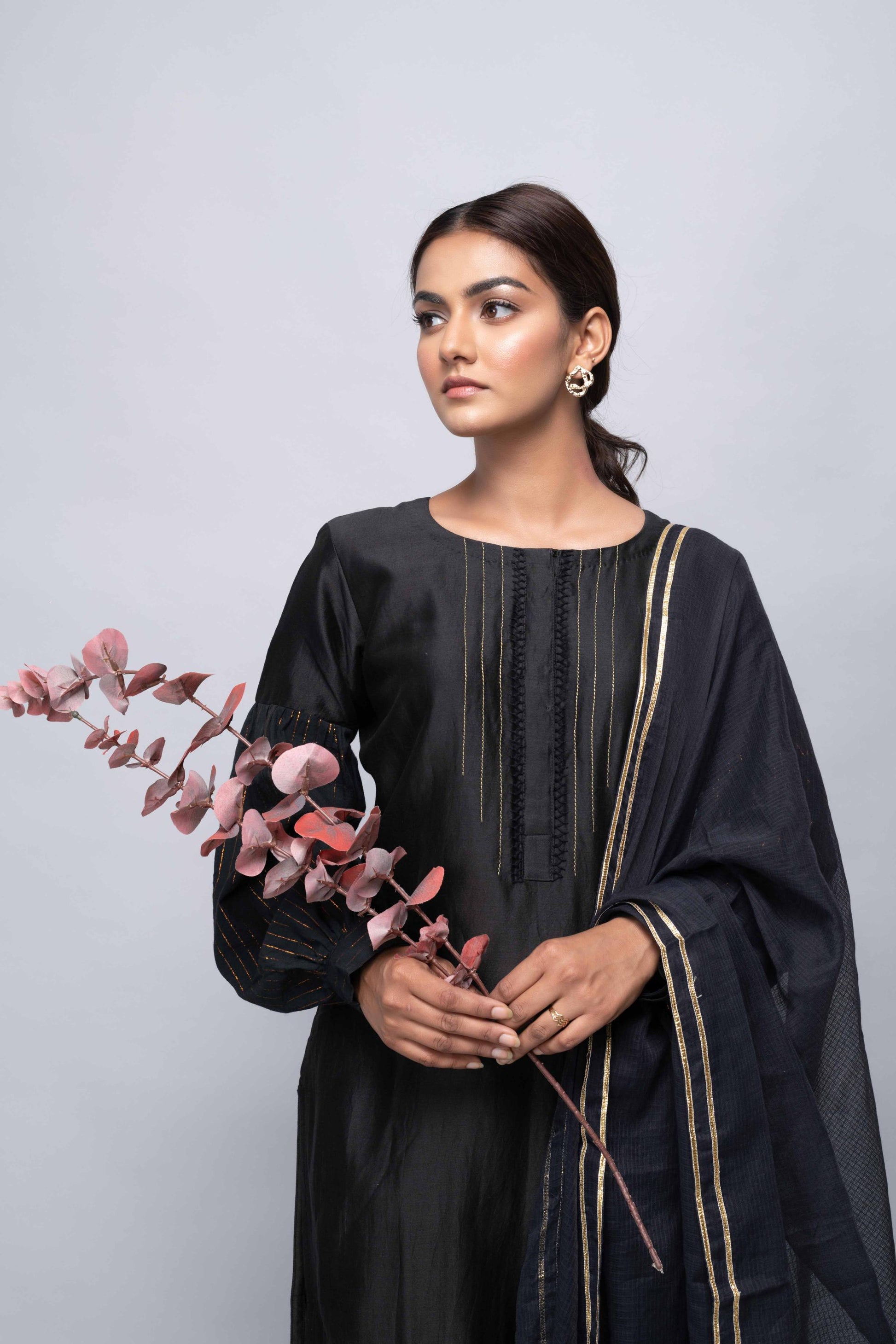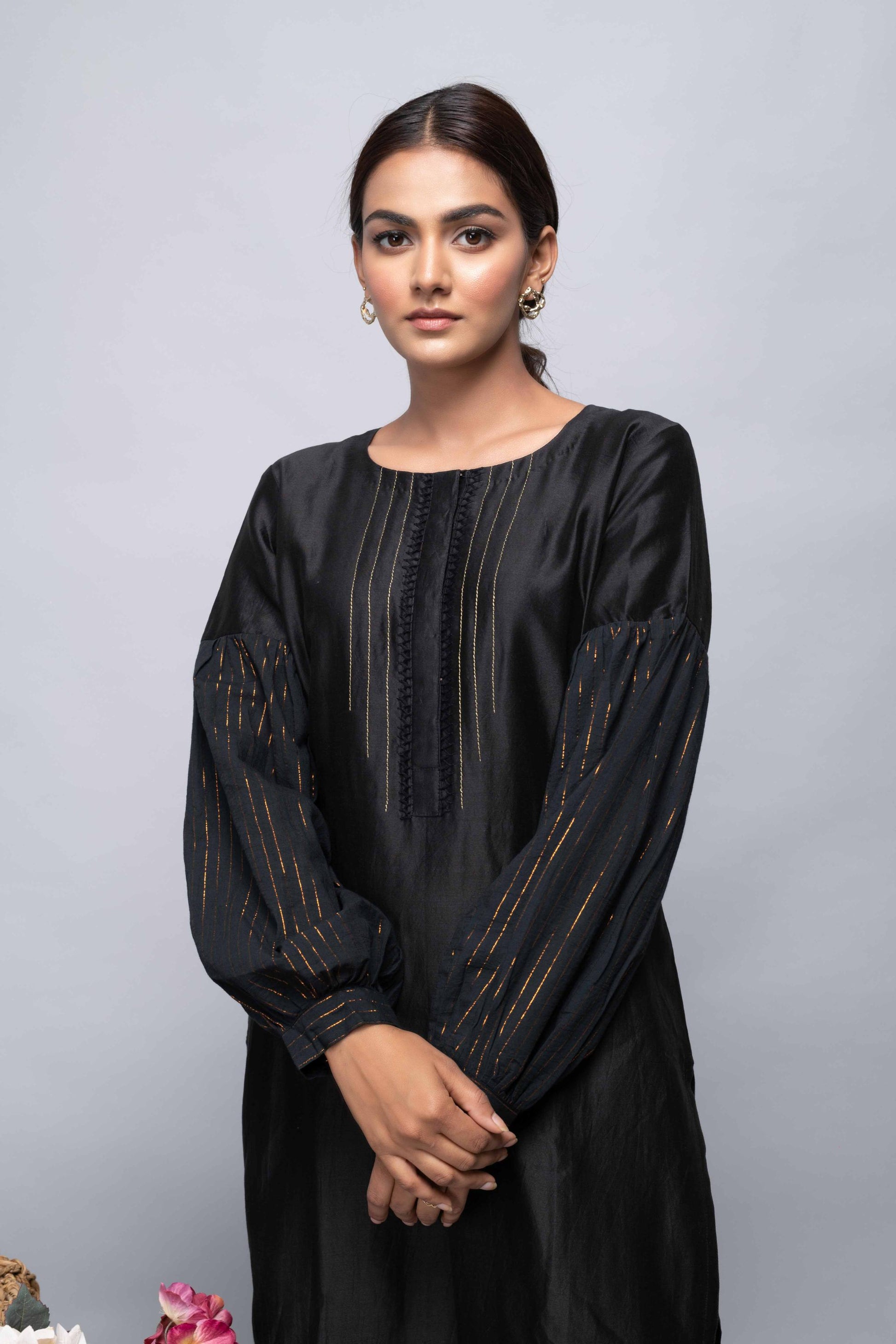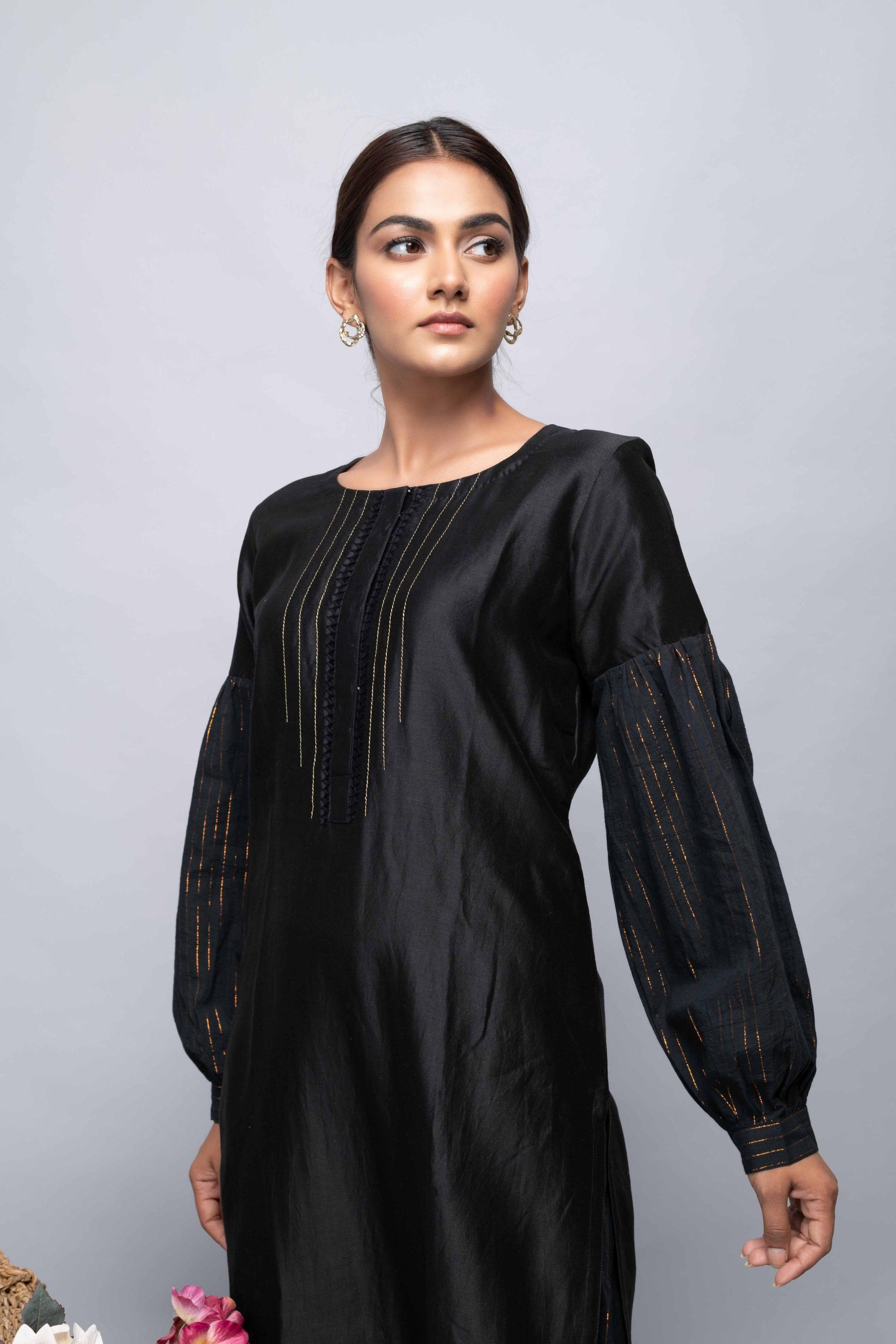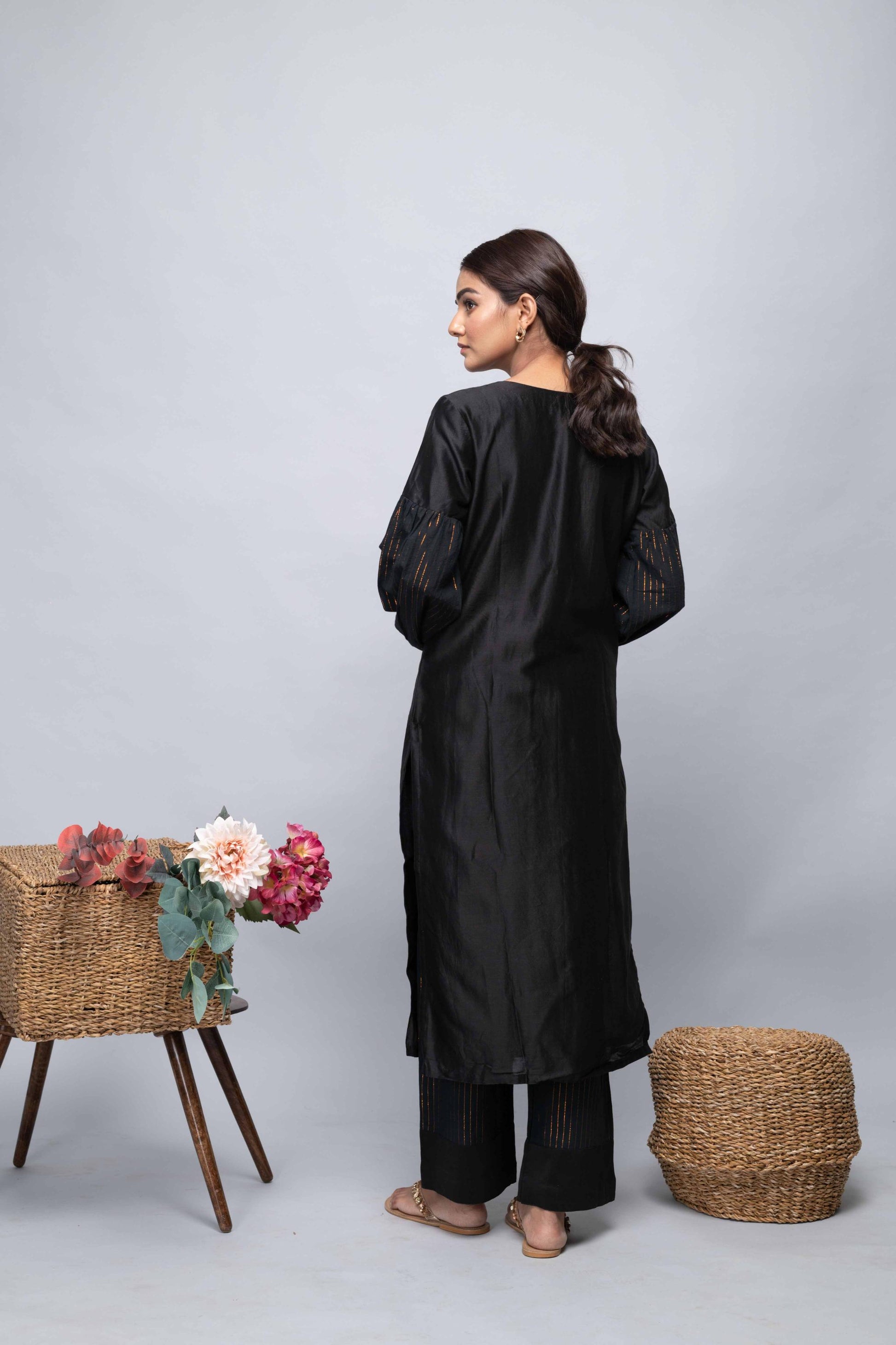 BLACK CHANDERI SUIT SET